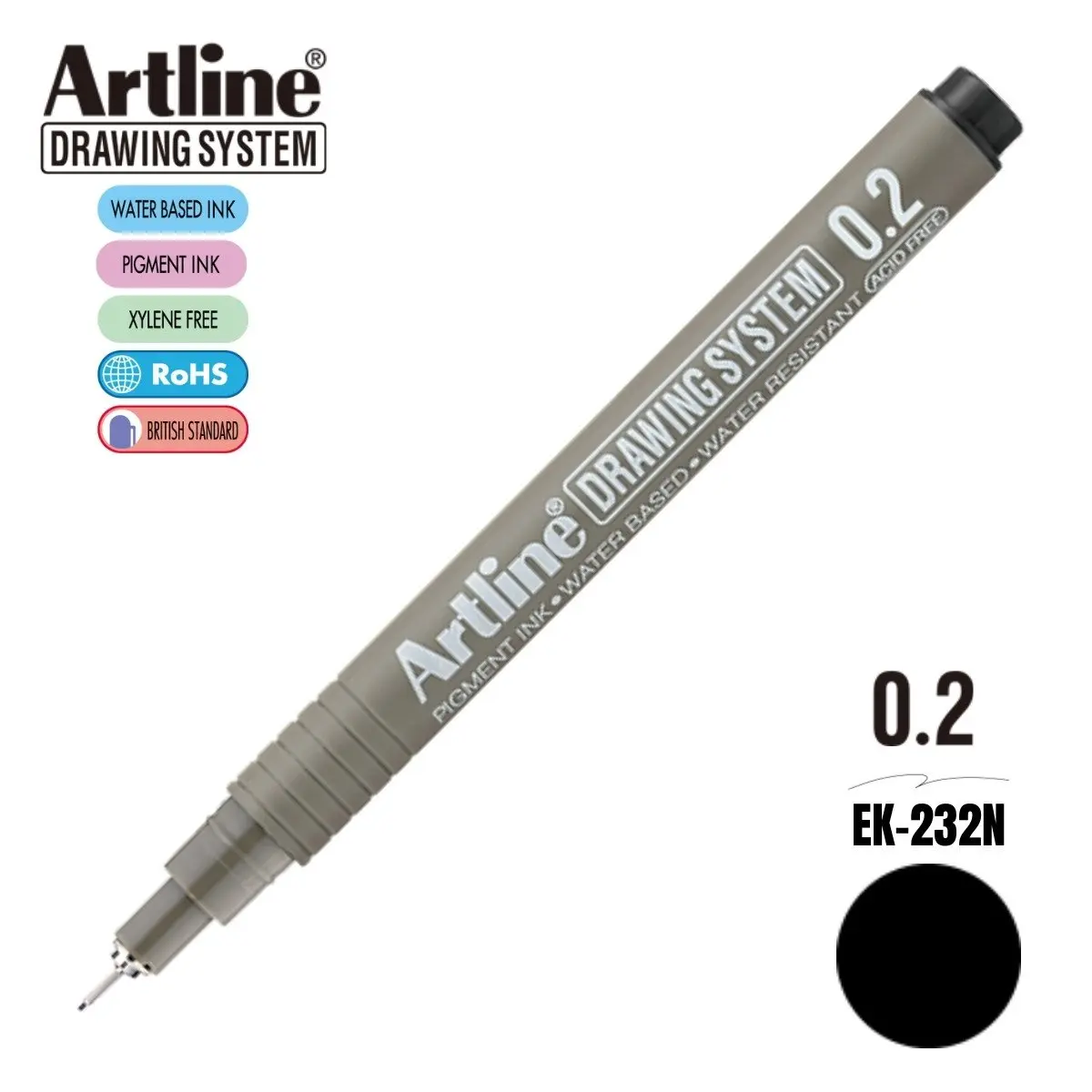 Artline EK-232 Drawing System Teknik Çizim Kalemi 0.2 mm Siyah