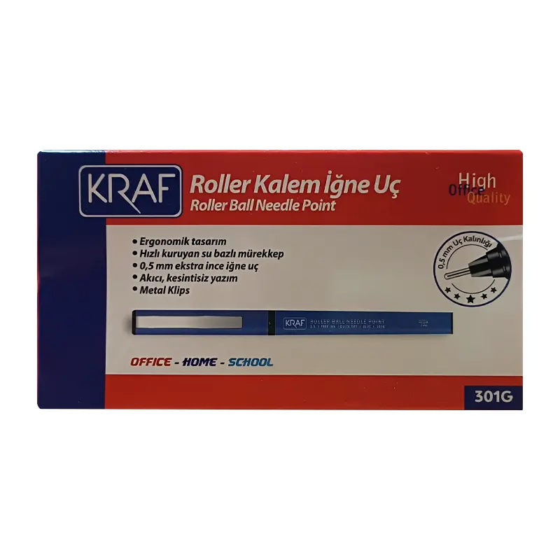 Kraf 301G İğne Uçlu Roller Kalem, hassas yazı ve çizim ihtiyaçlarınız için mükemmel bir seçenektir. Ergonomik tasarımı ve kaliteli mürekkebiyle uzun süreli ve konforlu bir kullanım sunar. Eğer net ve belirgin yazılar arıyorsanız, bu kalem ihtiyaçlarınızı karşılayacaktır.