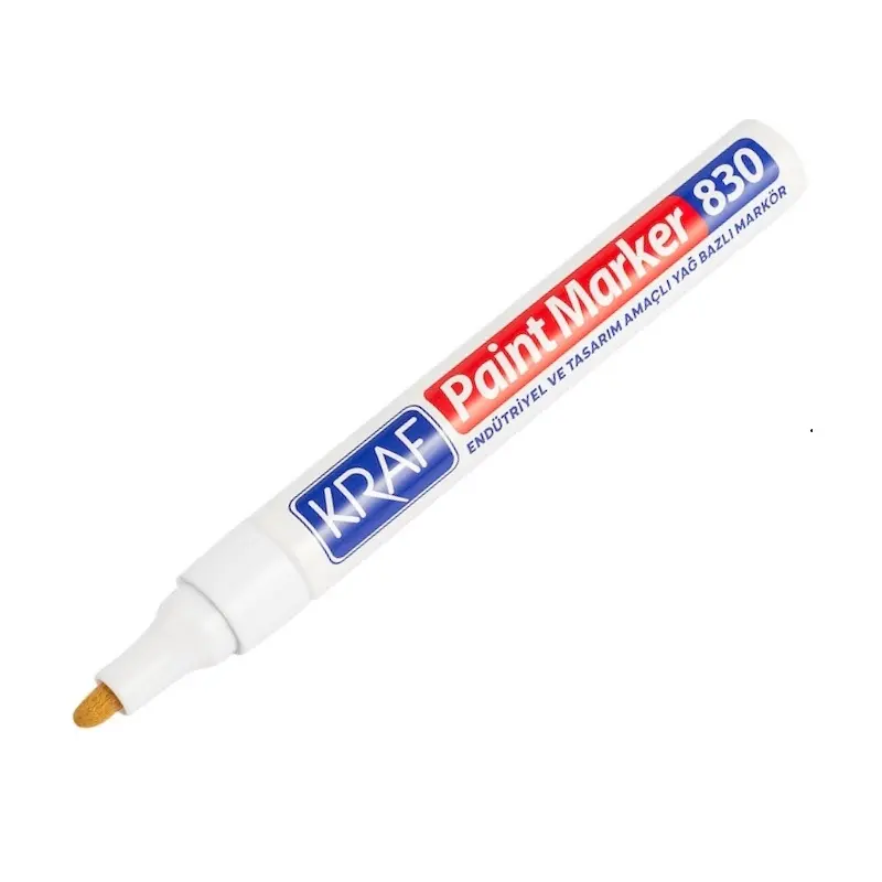 Kraf 830 Endüstriyel Yağ Bazlı Paint Marker, işaretleme ve etiketleme ihtiyaçlarınızda dayanıklılığı ve kalıcılığı ile öne çıkar. Yağ bazlı mürekkebi sayesinde pek çok yüzeyde güvenle kullanılabilir, hızlı kurur ve silinmeden uzun süre kalır.