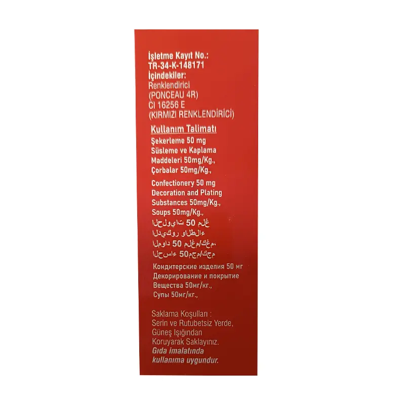 - Ürün Adı: Toz Gıda Boyası Kırmızı
