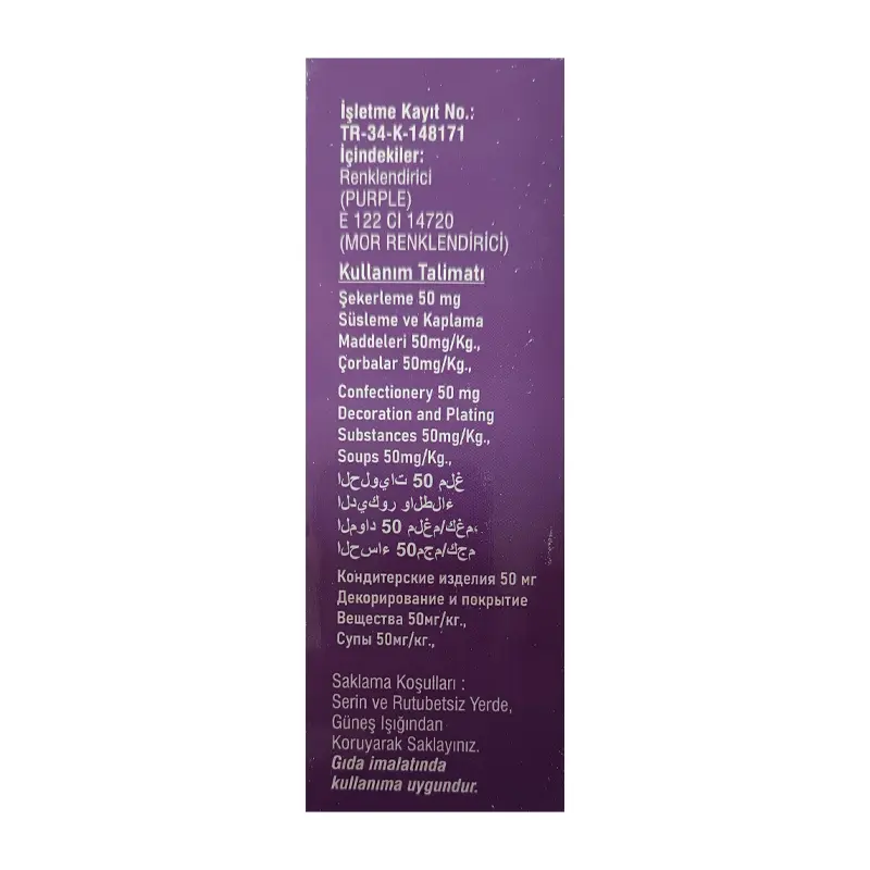 - Ürün Adı: Toz Gıda Boyası Mor