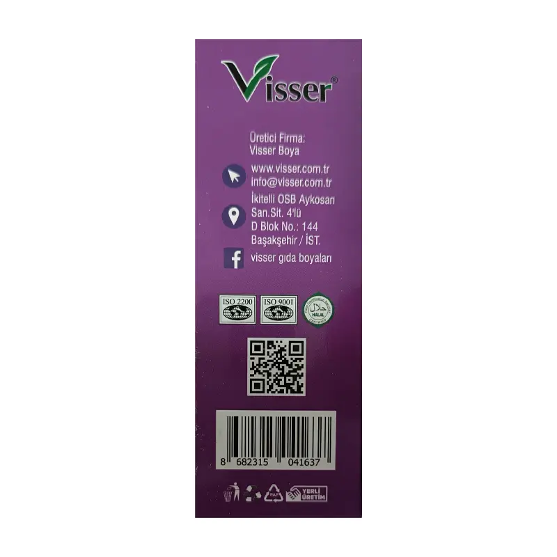 Misyon Visser Toz Gıda Boyası 9 Gr. Paket x 12'li Kutu Mor, gıdalarınıza canlı ve etkileyici bir mor renk katmak için ideal bir üründür.