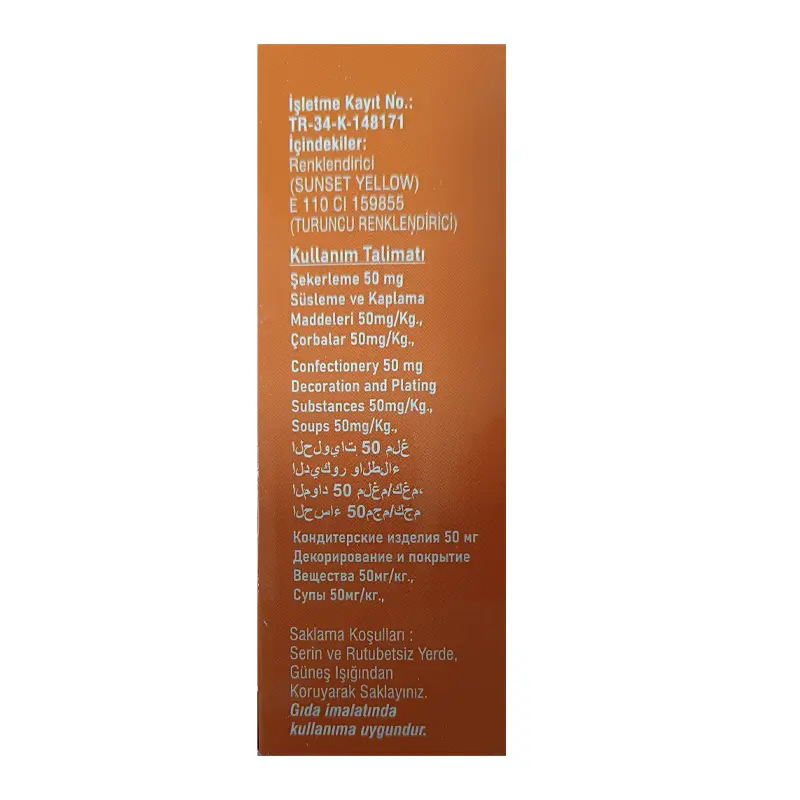 - Ürün Adı: Toz Gıda Boyası Turuncu