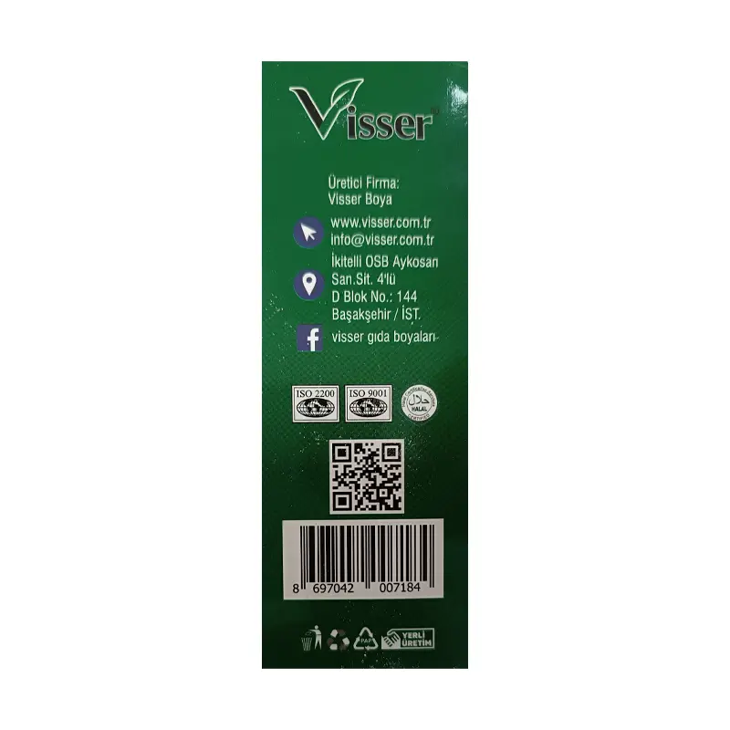 Misyon Visser Toz Gıda Boyası 9 Gr. Paket x 12'li Kutu Yeşil, gıdalarınıza canlı ve etkileyici bir yeşil renk katmak için ideal bir üründür.
