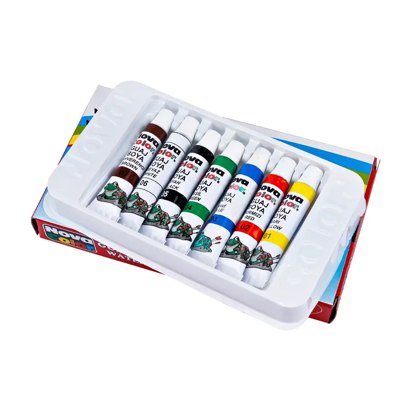 Nova Color Guaj Boya Tüp 7 Renk seti, sanatçılar ve hobi meraklıları için ideal bir seçenektir. Her tüp 7 ml hacminde olup, 7 farklı renk seçeneği sunmaktadır. Bu set, geniş renk yelpazesiyle çeşitli projelerde kullanılabilir.