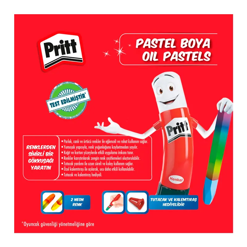 Pritt Karton Kutu Pastel Boya 24 Renk, çocukların yaratıcılıklarını güvenle geliştirebilecekleri kaliteli bir boyama setidir.