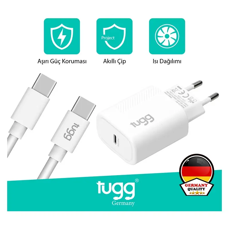 Tugg Germany'nin bu 25W'lık güçlü şarj seti, özellikle premium Android cihaz ve tablet kullanıcıları için mükemmel bir seçim. Dahili Type-C kablosu sayesinde ekstra aksesuar karmaşasına son verirken, gelişmiş koruma sistemleri cihazınızın ömrünü uzatıyor. Samsung Galaxy serisi gibi yüksek şarj kapasiteli cihazlarda bile etkili performans gösteren bu ürün, kompakt boyutuna rağmen şaşırtıcı bir güç sunuyor. Seyahatlerde ve günlük kullanımda büyük kolaylık sağlayan Tugg 104304 modeli, hızlı şarj ihtiyacı olan herkesin güvenle tercih edebileceği kalitede. Eğer USB-C girişli cihazınız için güçlü, pratik ve güvenilir bir şarj çözümü arıyorsanız, bu set tam size göre.