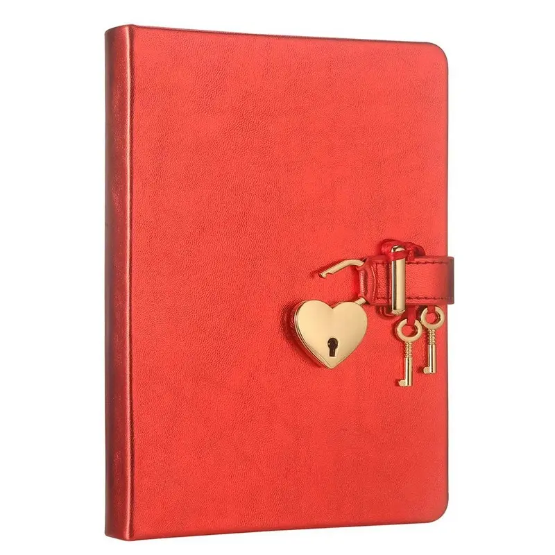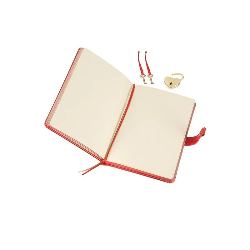 Bu kırmızı renkteki metalik kapaklı hatıra defteri, hem şık hem de kullanışlı bir tasarıma sahiptir. 13x18 cm boyutunda olan bu defter, sırlarınızı ve hatıralarınızı güvende tutmak için sağlam bir metal kilitle donatılmıştır. 80 gramlık kaliteli çizgili sayfaları, toplamda 320 sayfa sunar ve dolma kalem ile yazı için uygundur. Sert kapağı altın yaldız kenar detaylarıyla tamamlanmış, 180 derece açılabilen yapısıyla yazma kolaylığı sağlar. Aynı zamanda özel kutusunda gelmesi, onu mükemmel bir hediye seçeneği haline getirir.